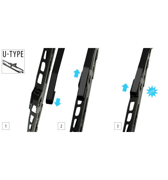 Стеклоочистители универсальные тип-U Каркасные ( 275-700 мм ) Стеклоочистители с адаптерами ТИП-U 9 мм и ТИП-U 8 мм, каркасной конструкции, щетки из силиконокаучуковой смеси.
